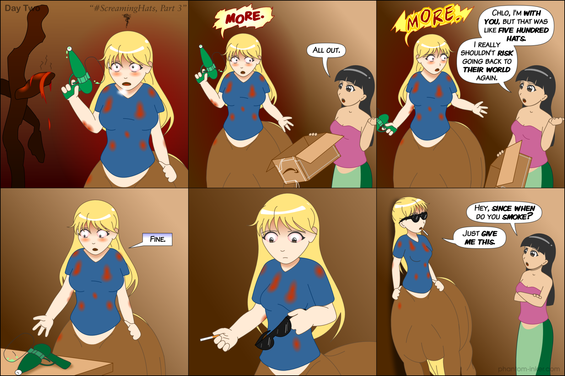 And with this, we end the #ScreamingHats mini-arc. We'll get back to our regular storyline shortly: Chapter 9 is coming soon. But Chloe and Zia couldn't just let this one go, so we got three pages of #ScreamingHats, not just one.