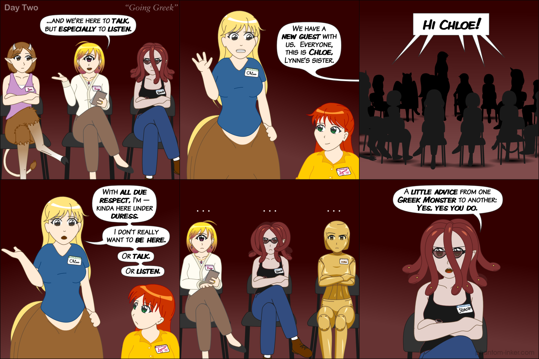 - Stacie (frowning): "A little advice from one Greek monster to another: Yes, yes, you do."