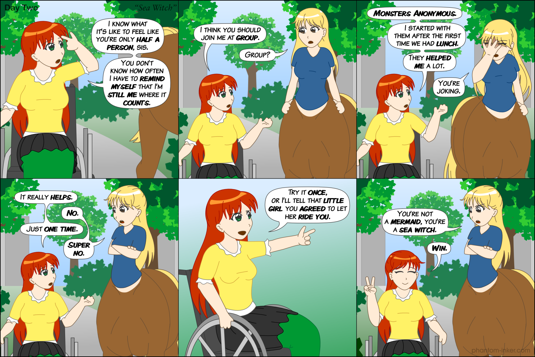 - Lynne (points at Chloe, grinning evilly): "Try it once, or I'll tell that little girl you agreed to let her ride you."